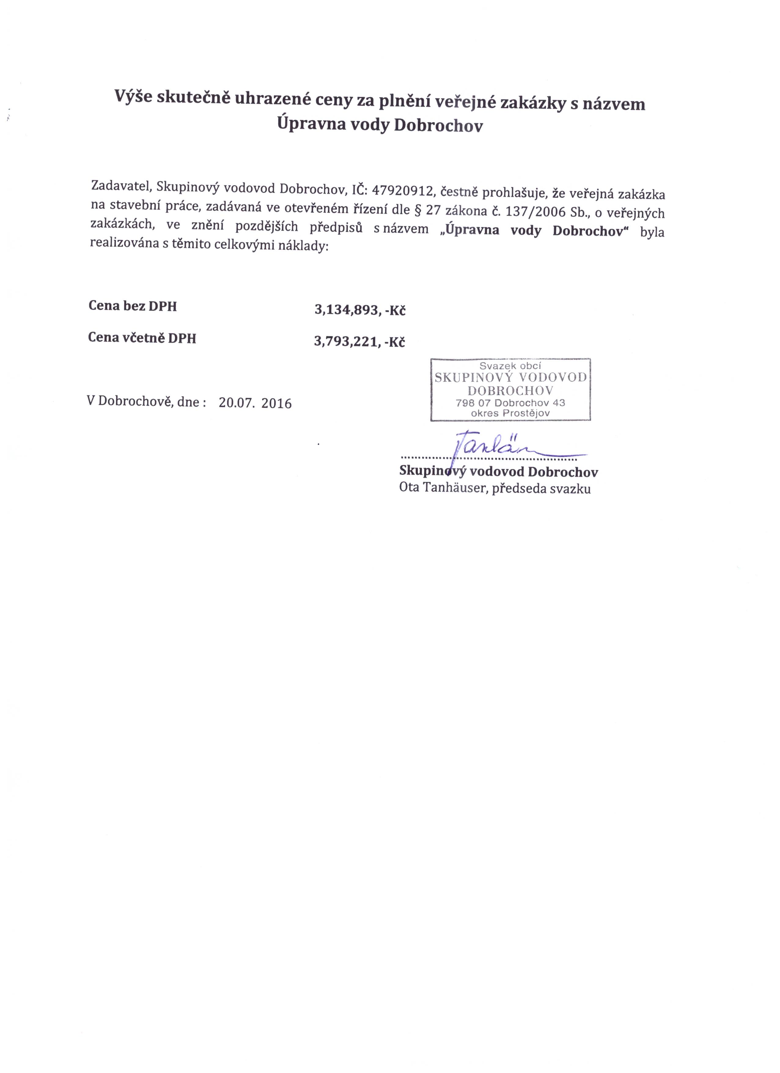 Výše skutečně uhrazené ceny | ostatní dokumentace - veřejná |